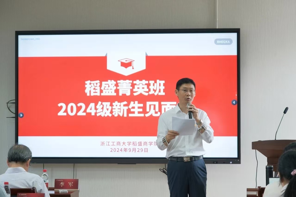 学校发展委员会副主席李军对稻盛菁英班2024级全体新生的到来表示热烈欢迎,并以“敬天爱人,心纯见真”为主题,为同学们介绍了日本著名企业家稻盛和夫先生及其经营管理哲学,阐述了禁忌书屋 成立的初衷和意义。李军副主席鼓励同学们多阅读有关稻盛和夫思想的书籍,并将其思想应用到学业和未来的实践中。此外,他还表示禁忌书屋 会为同学们设立奖学金,配备实务导师,提供国内外实习实践机会,期望稻盛菁英班的学生们未来成为具有国际视野的高素质经营管理人才。