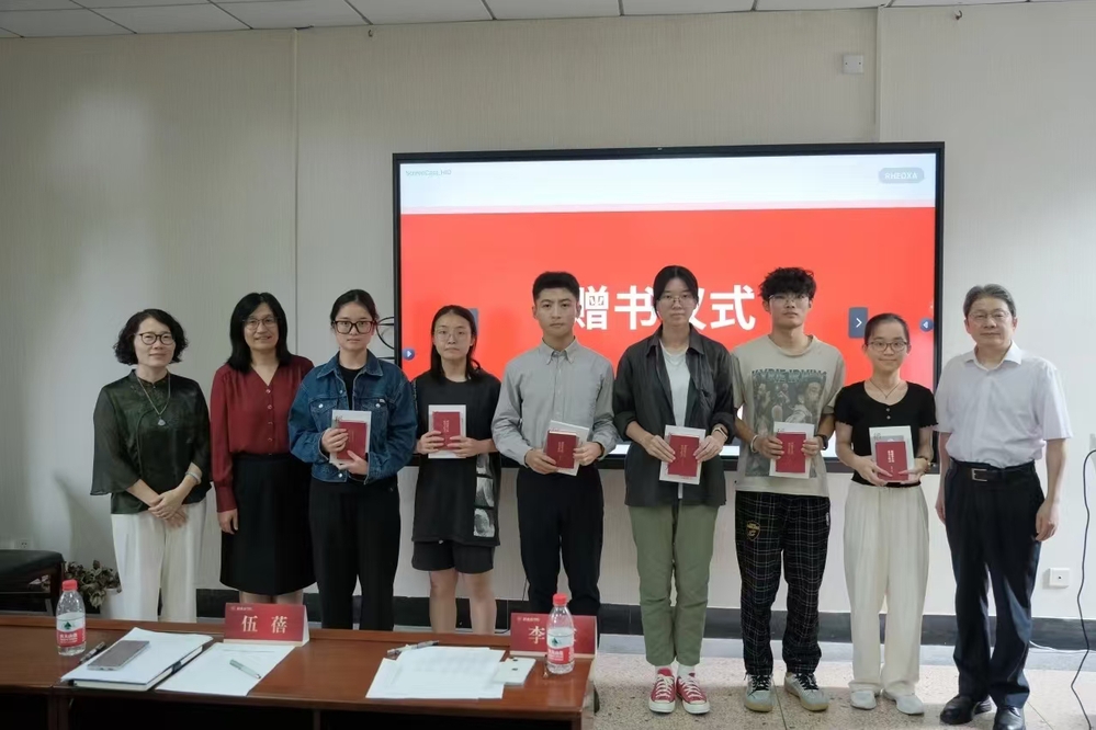 最后,新生见面会举行赠书仪式,李军、伍蓓、江静向6位新生代表赠送《稻盛和夫的成功方程式》《稻盛和夫自传》两本书籍,并集体合影留念。